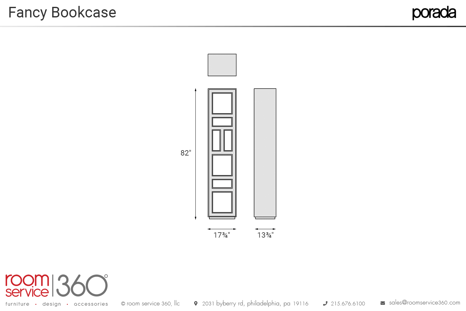 - 17¾"W × 13¾"D × 82"H