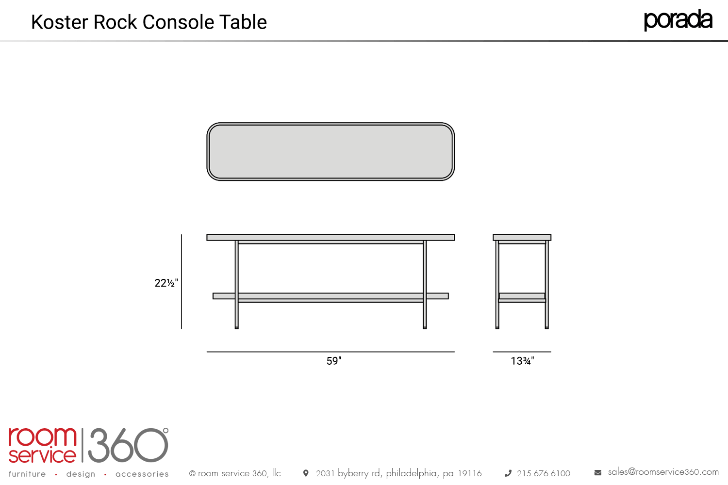 - 59"W × 13¾"D × 22½"H