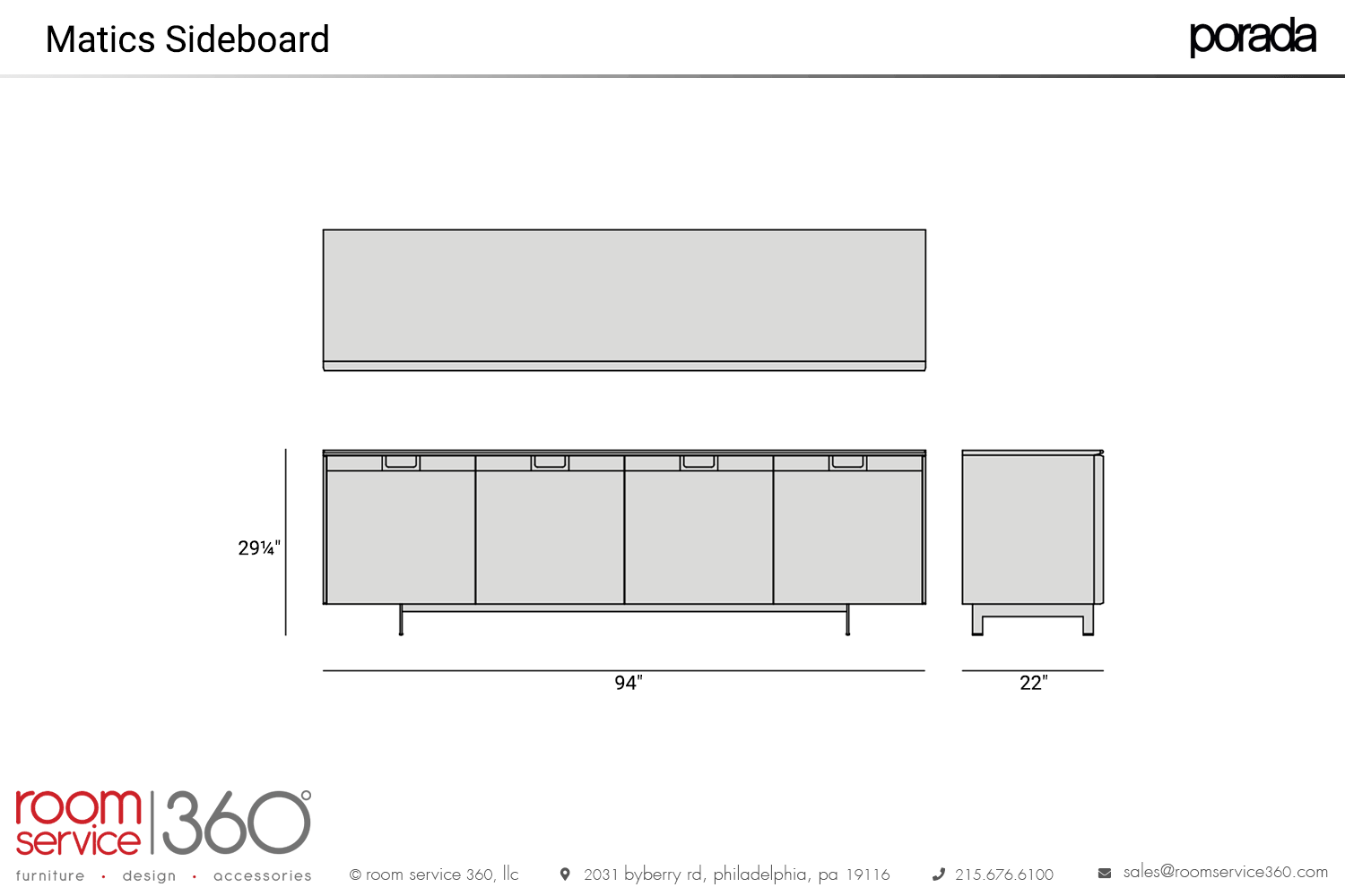 - 94"W × 22"D × 29¼"H