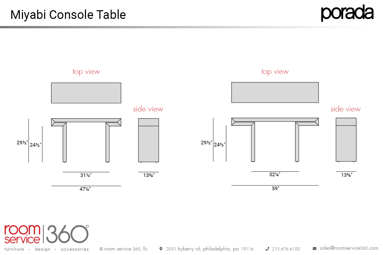 - 59"W × 13¾" D × 29½"H