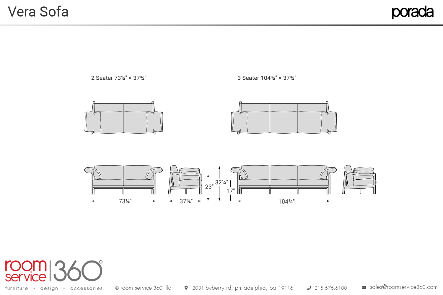 - 73¼"W × 37¾" D × 32¼"H (2 seats)
