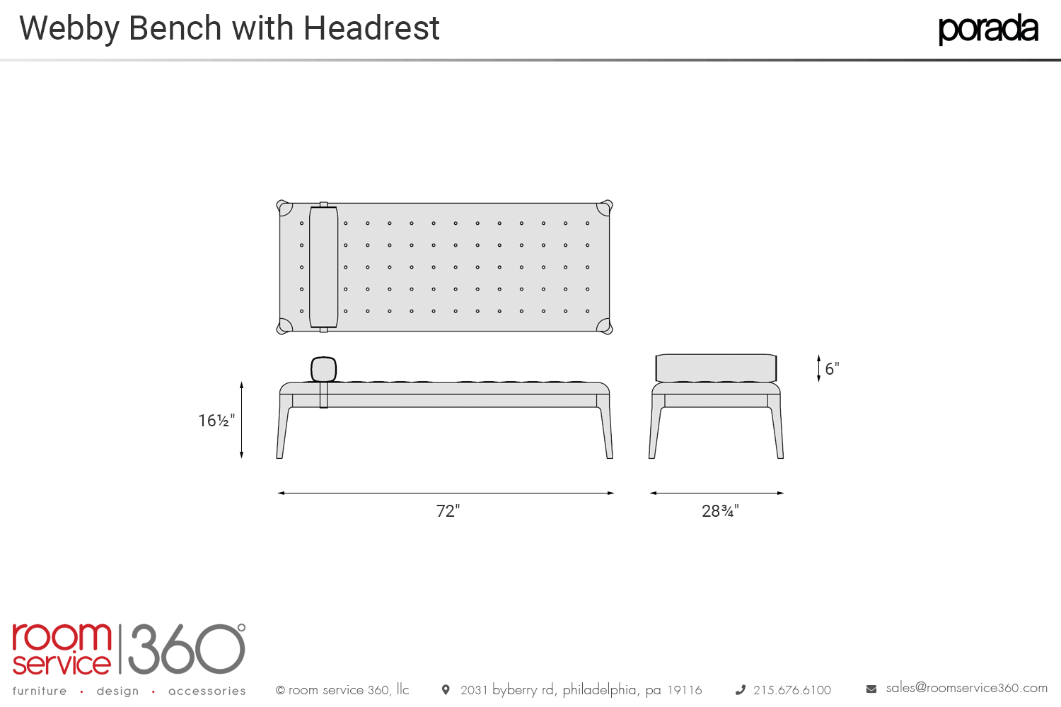 - 72"W × 28¾"D × 16½"H