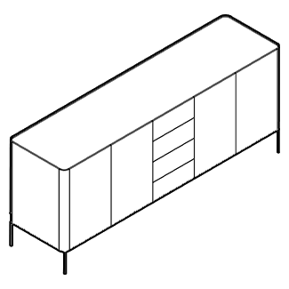 - 2 variations: 5 swing doors, or 4 doors and 4 central drawers