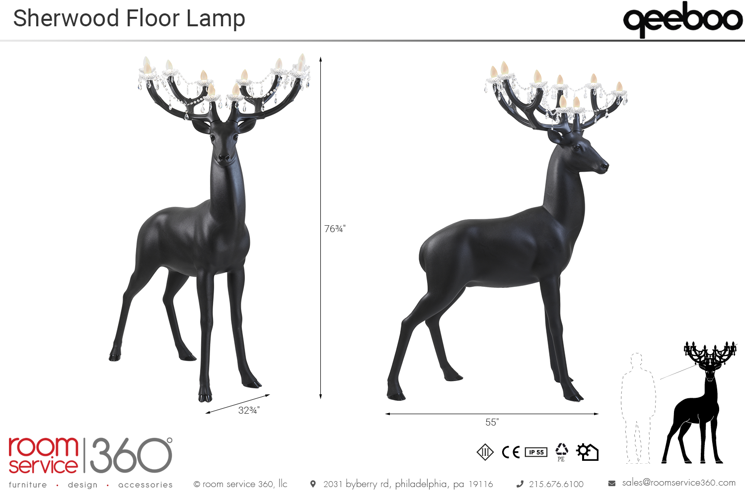 The Sherwood floor lamp from Qeeboo is an enchanting blend of mysticism and functionality that transforms any space into a magical realm. Crafted in the silhouette of a majestic deer, this floor lamp captivates with its grand antlers that double as a unique chandelier, casting a warm and inviting glow throughout the room. More than just a light source, the Sherwood floor lamp becomes a charming companion, bringing a touch of fairy-tale elegance to your living space. Crafted with state-of-the-art plastic manufacturing, it makes the perfect addition to both indoor and outdoor spaces, allowing you to adorn your garden or grove with this whimsical piece of functional art.