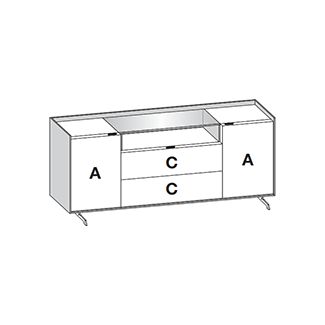 The Cabaret sideboard compositions 19C, 20C, 21C, 79C, 80C, and 81C by San Giacomo are all gorgeous additions to a modern setting. The minimalistic design packs a lot of style into a small package, featuring a combination of open and closed compartments. On each end, there are swing doors with glass shelves inside, and the center features a shelf and two spacious drawers. Because of this design, you can decide what you want to display and what you want to be tucked out of sight. Quality construction ensures durability for years to come.