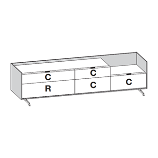 Manufactured in Italy with incredible attention to detail, the Cabaret TV stand comp. 58D is available in two depths in left and right configurations. The fronts come in laminate, matte lacquer, wood, metallic lacquer, and glossy lacquer finishes, and the top can match the fronts or come in ceramic options. Also, the frame comes in matte lacquer, wood, and metallic lacquer finishes, and the base comes in metal finishes.