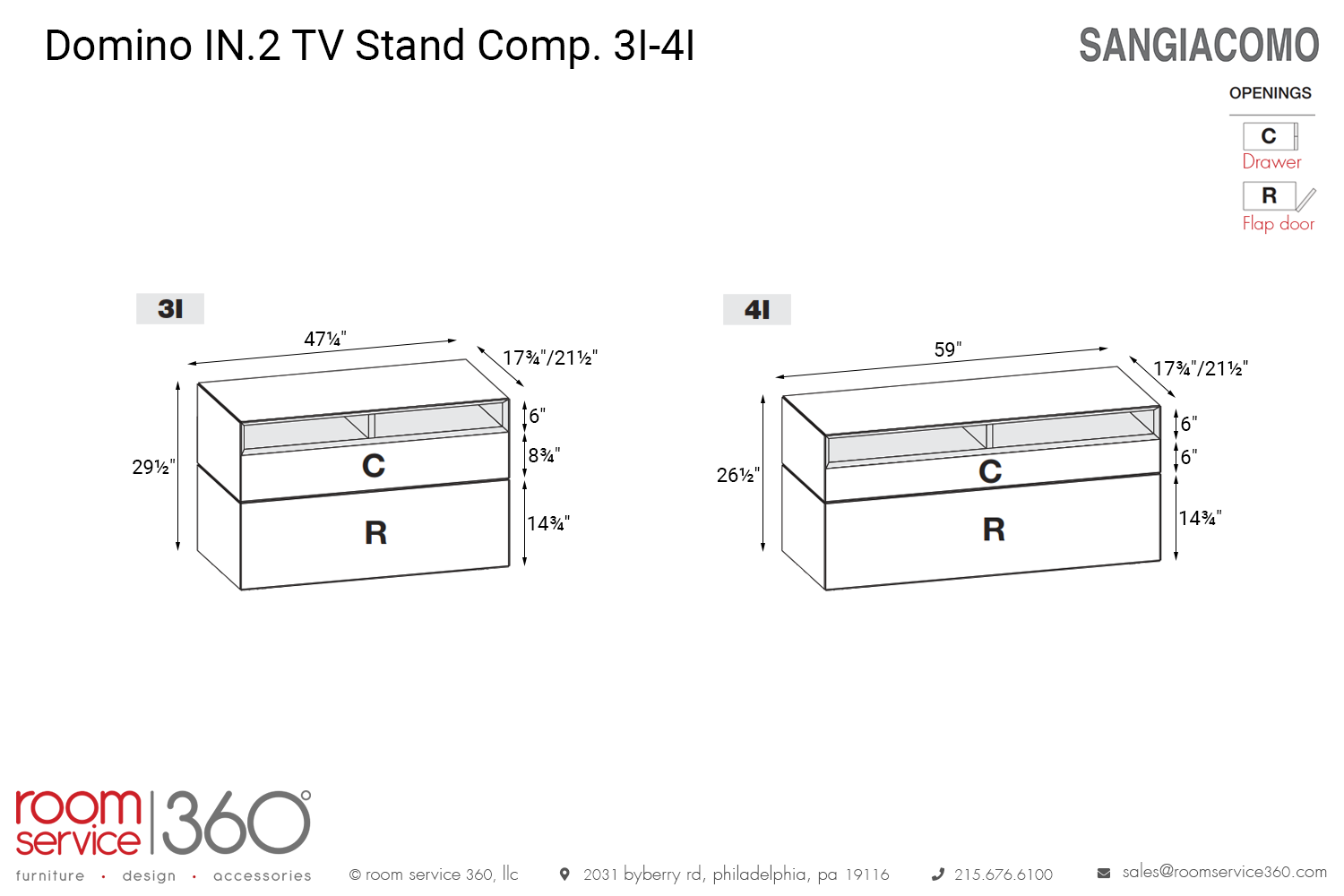 - 59"W × 17¾" or 21½"D × 26½"H