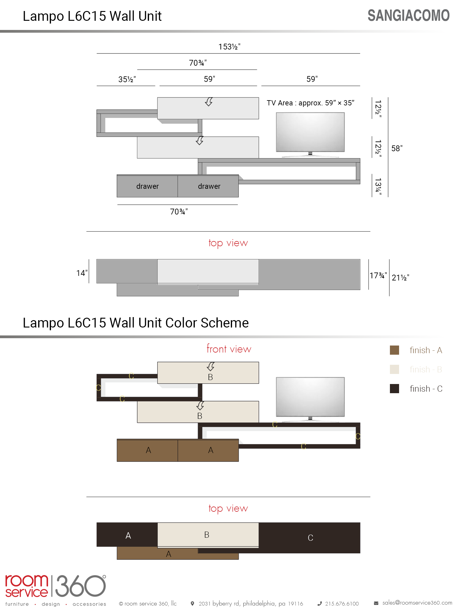 - Finishes A and B come in laminate, lacquer, and wood finishes