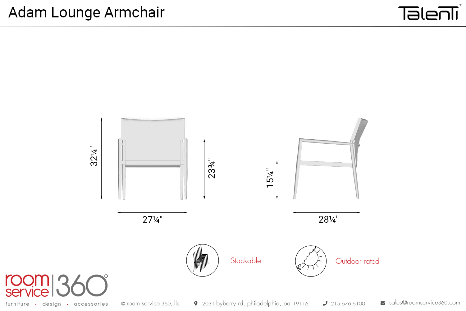 Manufactured with incredible care and attention to detail, the Adam lounge armchair is available in multiple metal finishes with Textilene upholstery. Versions are available with and without an outdoor cover.