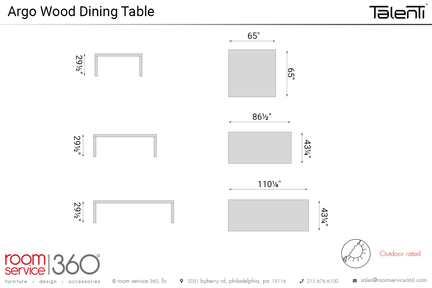 The Argo wood dining table by Talenti brings a rustic style to your outdoor oasis. The all-wooden structure brings a natural vibe to the space, which fits in well in outdoor settings! Because of the four-legged structure, there is plenty of legroom, and it offers the ability to completely tuck in dining chairs when they are not in use. The spacious top allows everyone to eat and drink comfortably and have buffet-style meals.