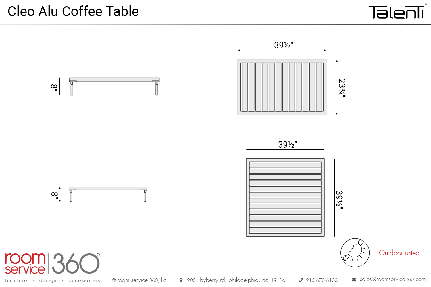 The Cleo Alu coffee table by Talenti is a classy addition to your outdoor oasis. The geometric silhouette features striped cutouts along the top, bringing a textured and dimensional element to the area. Because of the simple design, this table makes a lovely statement piece with any type of furniture and décor. There is plenty of room on top for display opportunities and essential items you want close by. It features weather-resistant materials to ensure durability. Also, an optional outdoor cover is available.