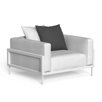 The talented Marco Acerbis designed the Cleo Alu large lounge armchair. It is available with an optional outdoor cover for convenience. Multiple fabric upholstery options are available, while the frame comes in aluminum colors. Decorative pillows sold separately.