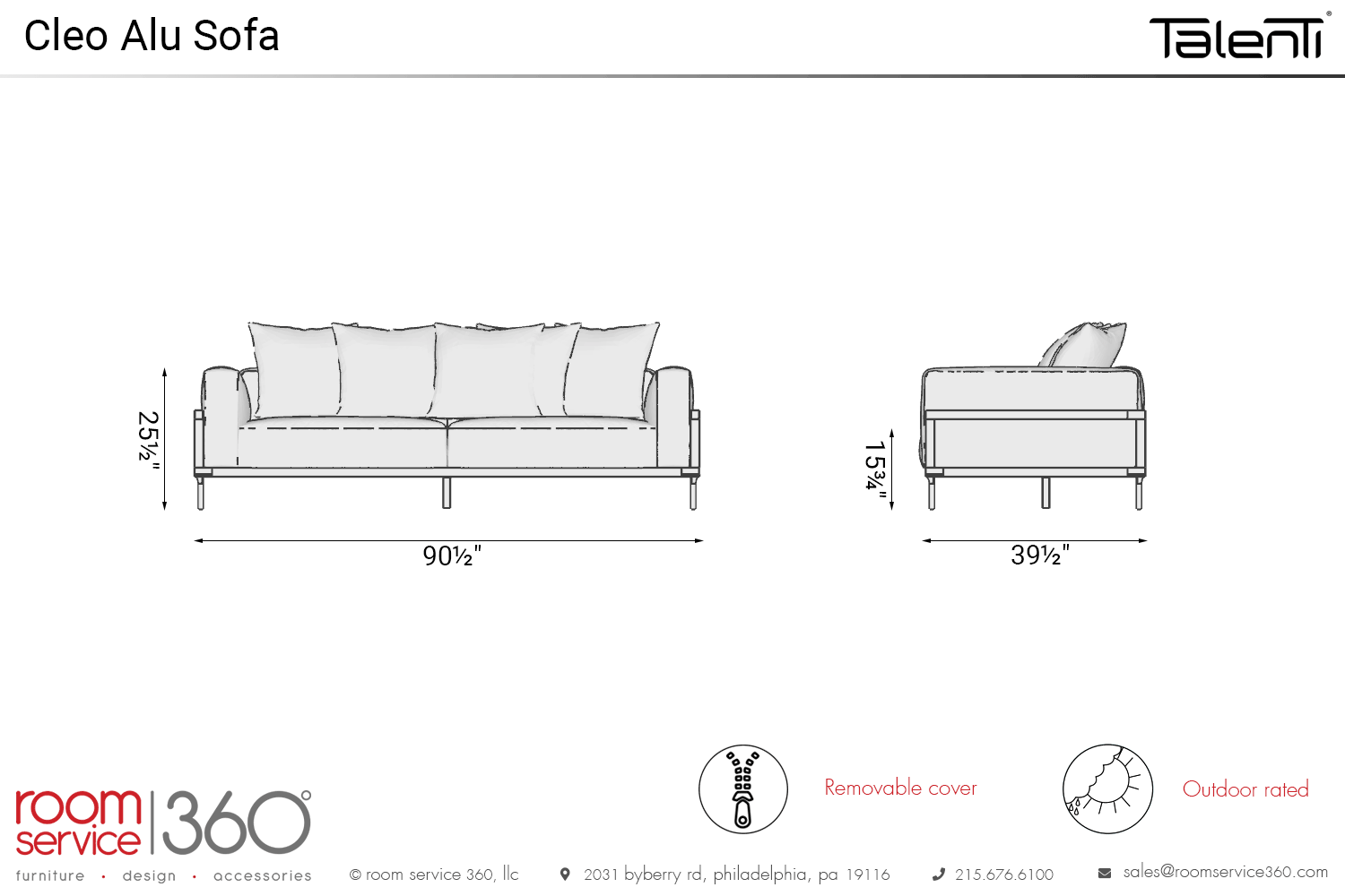 The Cleo Alu sofa by Talenti makes a grand impression in your backyard or patio. The geometric silhouette features boxy arms and cushions that provide a combination of clean lines and sharp angles. In addition to being aesthetically pleasing, this sofa is very comfortable and supportive because of the cushioned lining and soft upholstery. Thanks to weather-resistant materials, this sofa is sustainable in the elements for years to come. Also, an optional outdoor cover is available.
