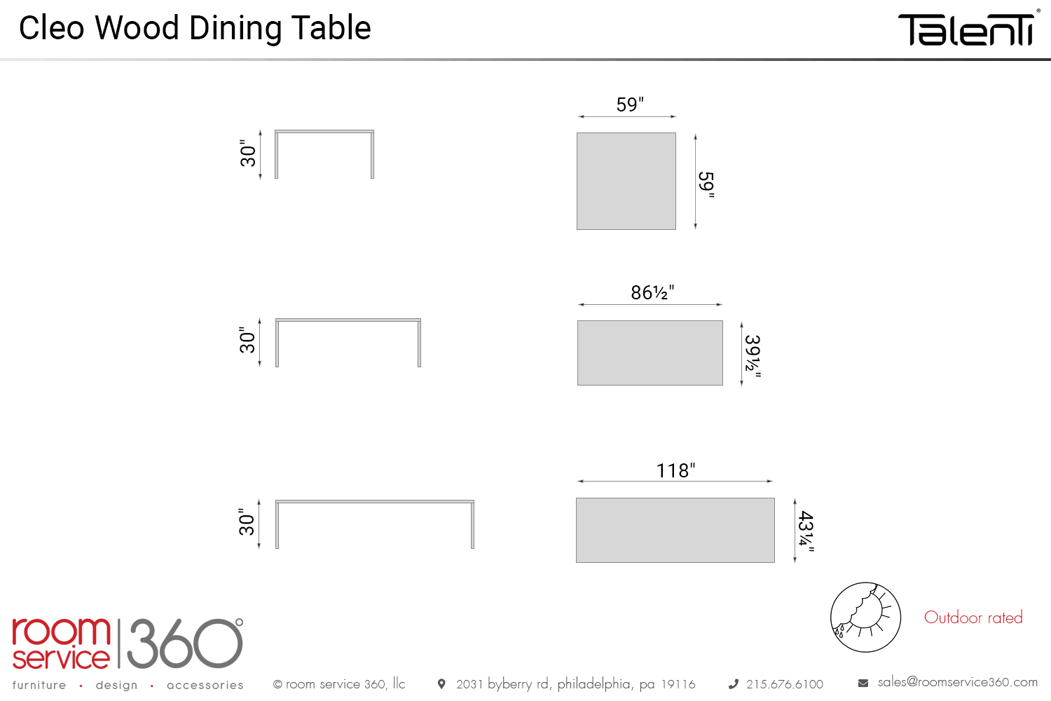 The Cleo wood dining table is available in square and rectangular sizes to accommodate individual needs. The top comes in ceramic finishes, and the base comes in wood options. Also, an optional outdoor cover is available.