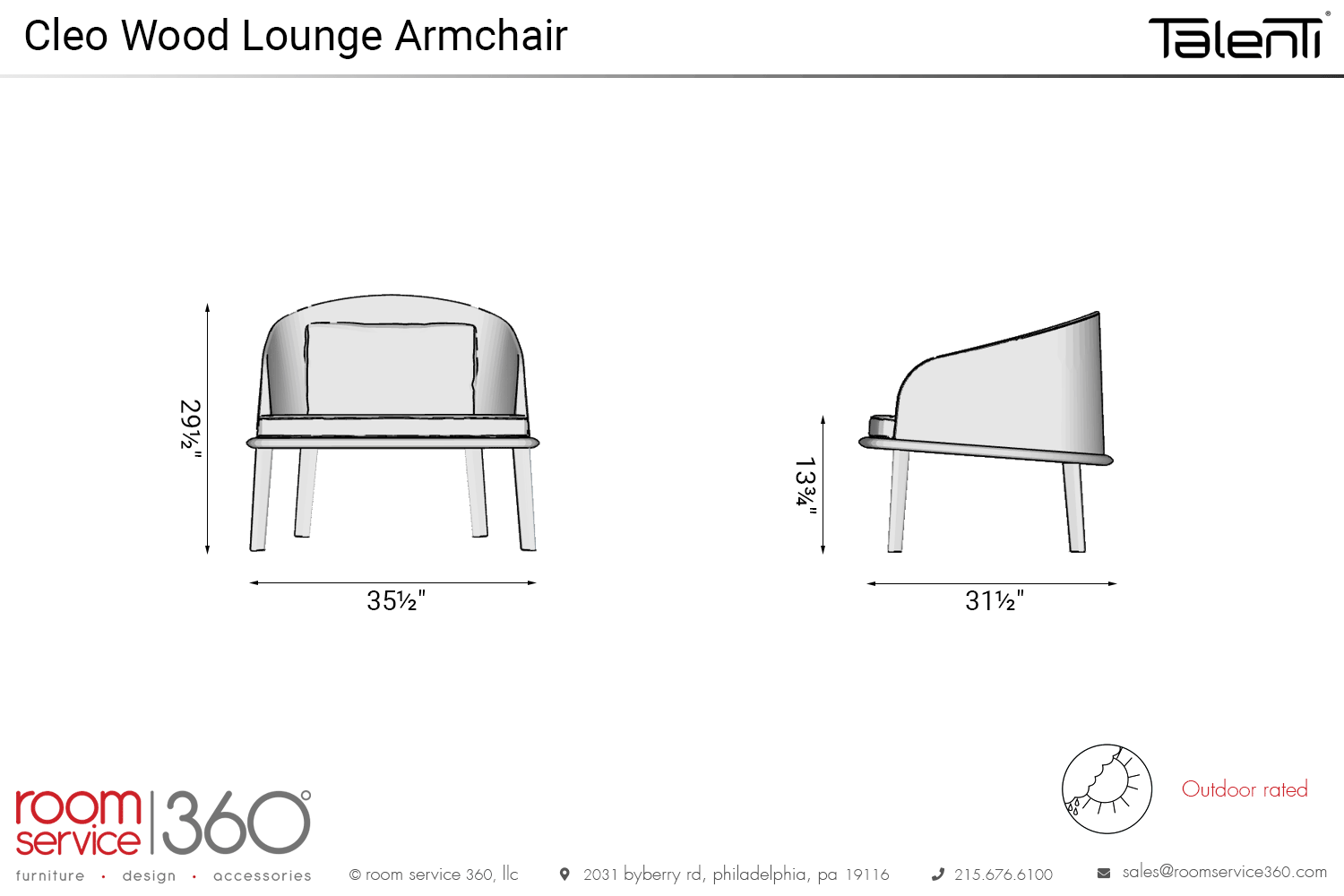 The Cleo wood lounge armchair by Talenti offers a cozy style to your contemporary backyard or patio. The weather-resistant materials ensure that this chair will last in the elements for the long haul, and an optional outdoor cover is available for extra protection. Thanks to the low wooden legs that are slightly angled and the rounded back with sloped armrests, this chair offers ergonomic support to promote proper posture. Also, the soft cushioning and fabric provide comfort as well. Pair with other chic Cleo products to form a cohesive design concept.