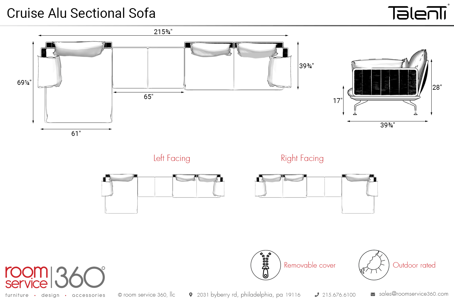 Upgrade your modern home with the lovely Cruise Alu sectional sofa by Talenti. The grand silhouette features a chaise on one end, open back sections, and spacious seat cushions. Because of this design, you can stretch out comfortably and enjoy the outdoors. The contrasting finishes stand out against one another, making it have a dual personality as a practical and stylish seating solution. Thanks to the use of the best quality materials, it is sustainable for years to come. Also, an optional outdoor cover is available.