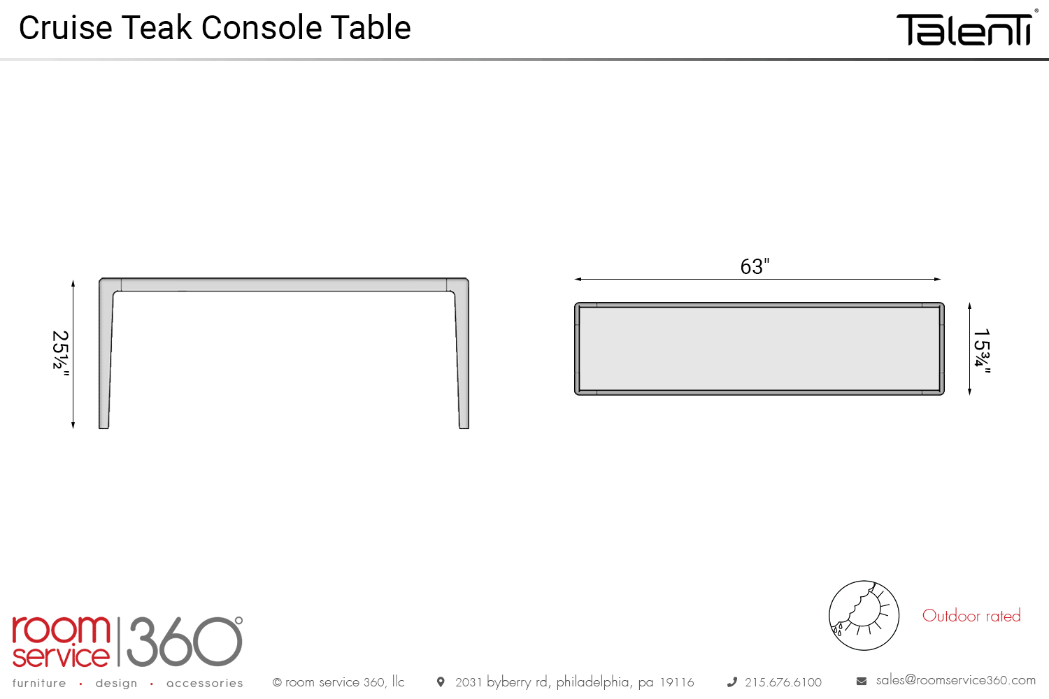 The Cruise Teak console table beautifully completes outdoor furniture. Its small size is not bulky, and it is a sleek addition. The tall height helps it fit seamlessly behind a sofa. A high, functional, and fashionable ceramic top and wood frame evoke the natural aesthetics of the great outdoors. Helpfully, it decorates and provides a spot for personal items you need outside. Outdoor-rated and available with an optional outdoor cover, it looks new even in the elements.