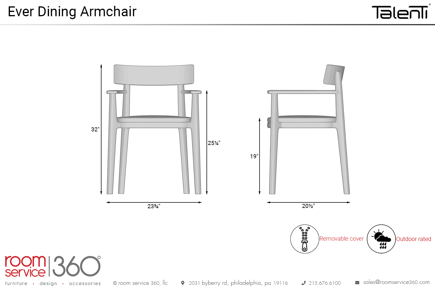 Incorporate an avant-garde outdoor design into your space with the Ever dining armchair from Talenti. Artistic and romantic, this seating solution is carefully crafted from rustic wood. It features straight arms and legs and a curved backrest that hugs your back. The seat is comfortable and welcoming, with a wide demeanor topped off by a plush fabric seat. Part of the Ever collection of outdoor furniture, this armchair looks great around its dining table counterpart.