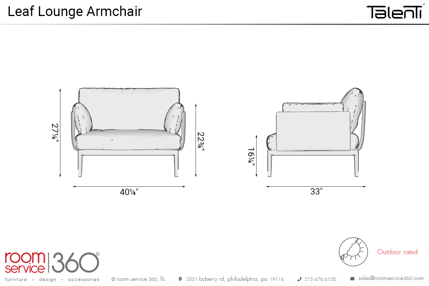 Manufactured in Italy to ensure quality, the Leaf lounge armchair is available with an optional outdoor cover. Various fabric upholstery options are available, while the arms and back come in woven fabric colors. Also, the frame comes in aluminum finishes. Decorative pillows sold separately.