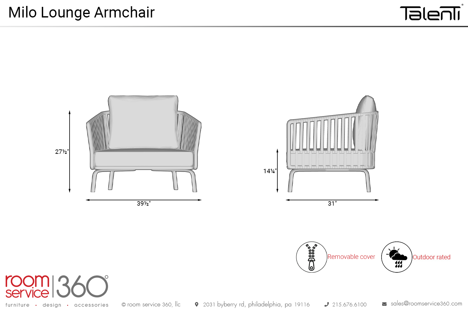 Featuring an outstanding balance of qualities, the Milo lounge armchair never compromises comfort for style and vice versa. The main defining component of this outdoor accent piece is the intricate rope that wraps around the frame, a caged and airy detail. Soft cushioning fills the rest of the seat with unparalleled comfort and plumpness. Sit down and enjoy a drink or read a book serenely. Outdoor-rated with removable covers and an optional outdoor cover, it stands tall against the elements and will remain looking new.