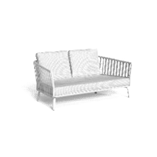 Manufactured with care and designed by Marco Acerbis, the Milo sofa is available in two sizes. Various fabric upholstery options are available, while the frame comes in aluminum finishes, and the rope comes in different colors. Also, an optional outdoor cover is available. Decorative pillows sold separately.