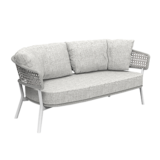 Sit back and relax outside with the lovely Moon Alu sofa by Talenti. The timeless design comfortably fits two to three people, and the soft cushioning molds your body with ease. This sofa offers geometric and bohemian vibes thanks to the basket-weave rope pattern along the back and sides. The contrasting finishes stand out against one another for an eye-catching touch. An optional outdoor cover is available if you want extra protection from the elements.