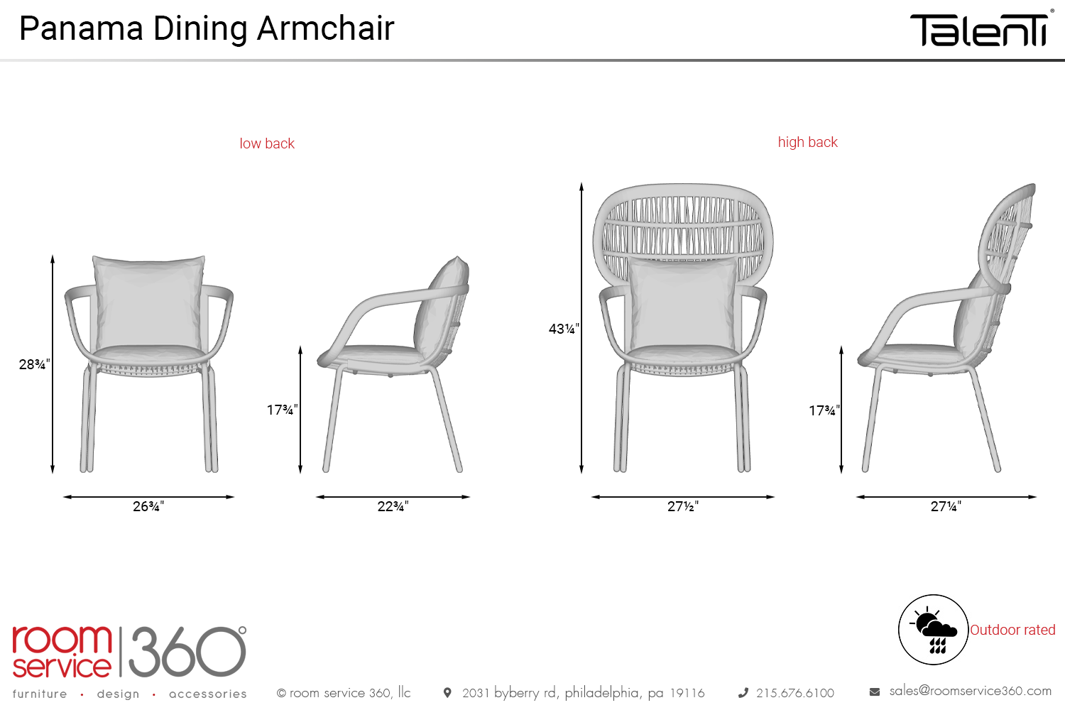Let the warm summer rays and the cool breeze wash over you on the cozy and chic Panama dining armchair from Italian designers Ludovica and Roberto Palomba for Talenti. The woven rope detailing adds texture and intrigue, and plush upholstery helps you settle down for a meal. With outdoor-rated materials to keep it looking beautiful no matter the weather, it makes the perfect addition to your modern patio or deck. An optional outdoor cover will further protect it and extend its longevity.