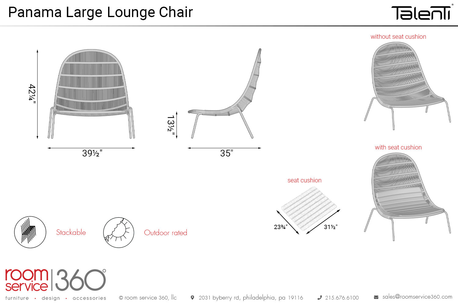 Manufactured with care and designed by Ludovica and Roberto Palomba, the Panama large lounge chair is easily customized. The structure comes in metal finishes, the rope comes in different colors, and the optional seat cushion comes in fabric finishes. If you’re looking for extra protection, an optional outdoor cover is available. Decorative pillows sold separately.