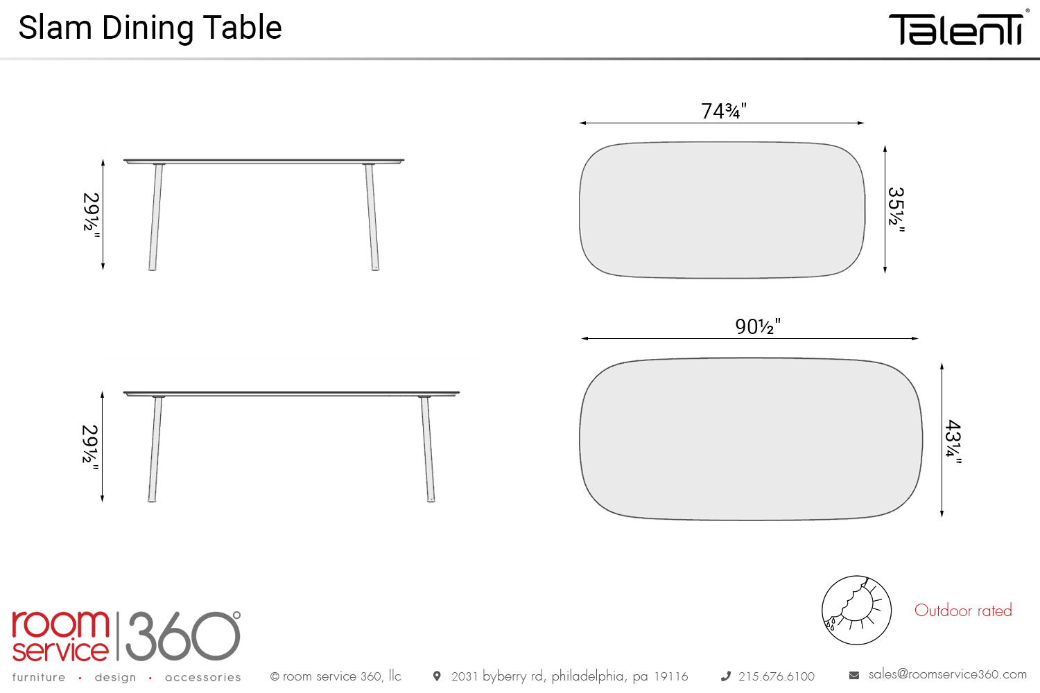 - 90½"W × 43¼"D × 29½"H