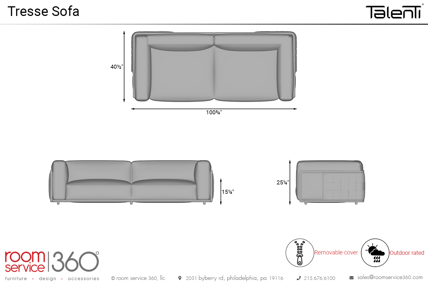 - 100¾"W × 40½"D × 25¼"H
