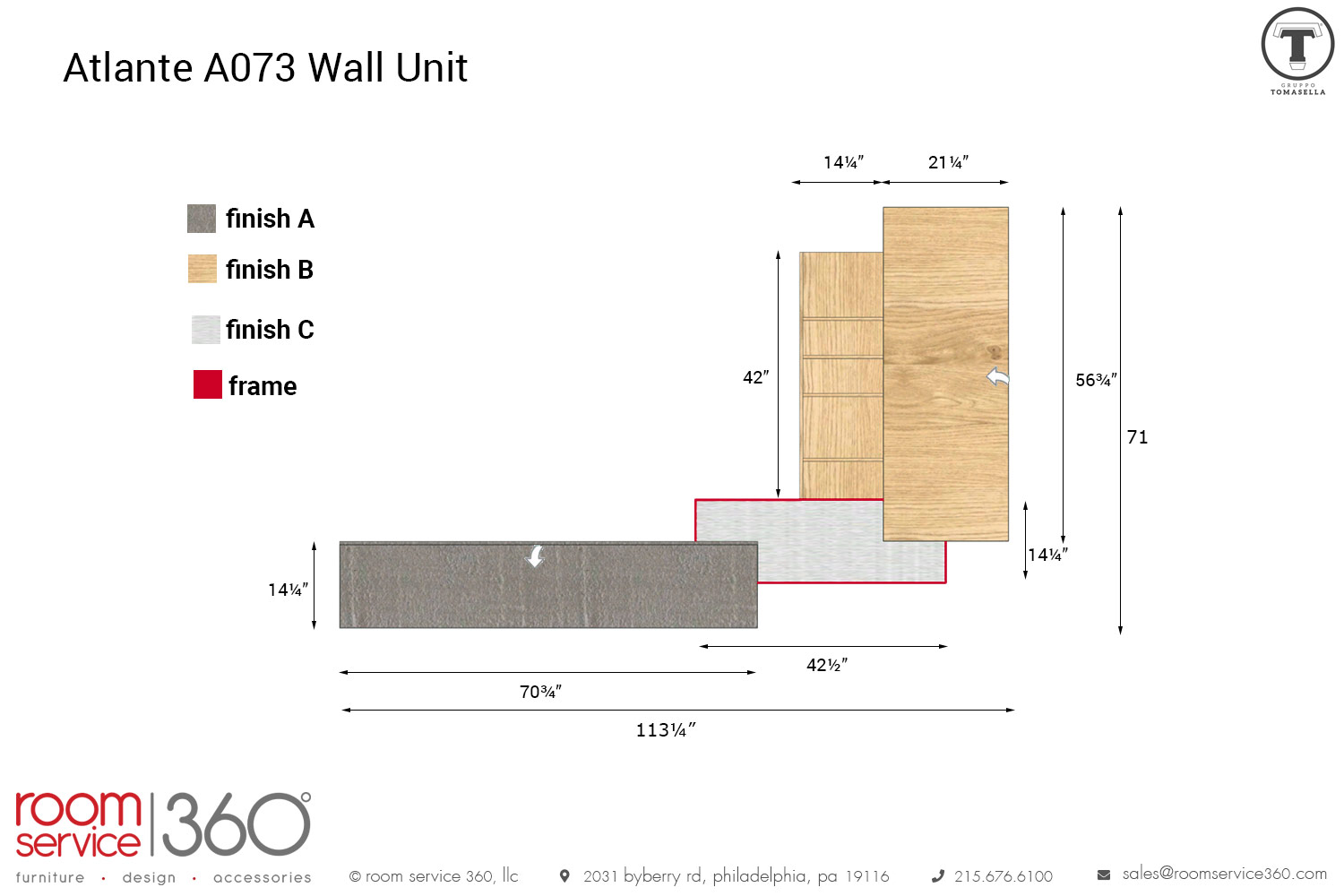 - Finish A and B come in laminate, matte lacquer, wood, colored wood, and glossy lacquer options