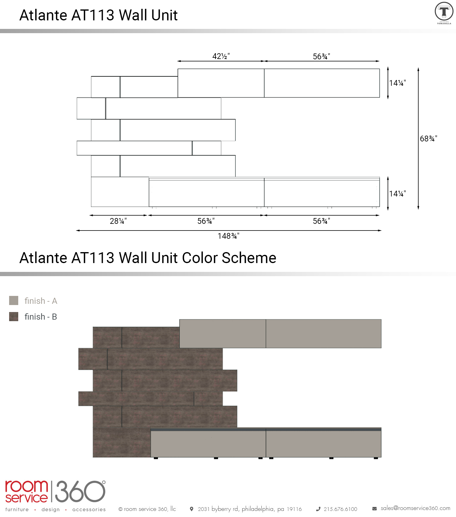 - Finish B comes in laminate, matte lacquer, colored wood, and decor graphic options