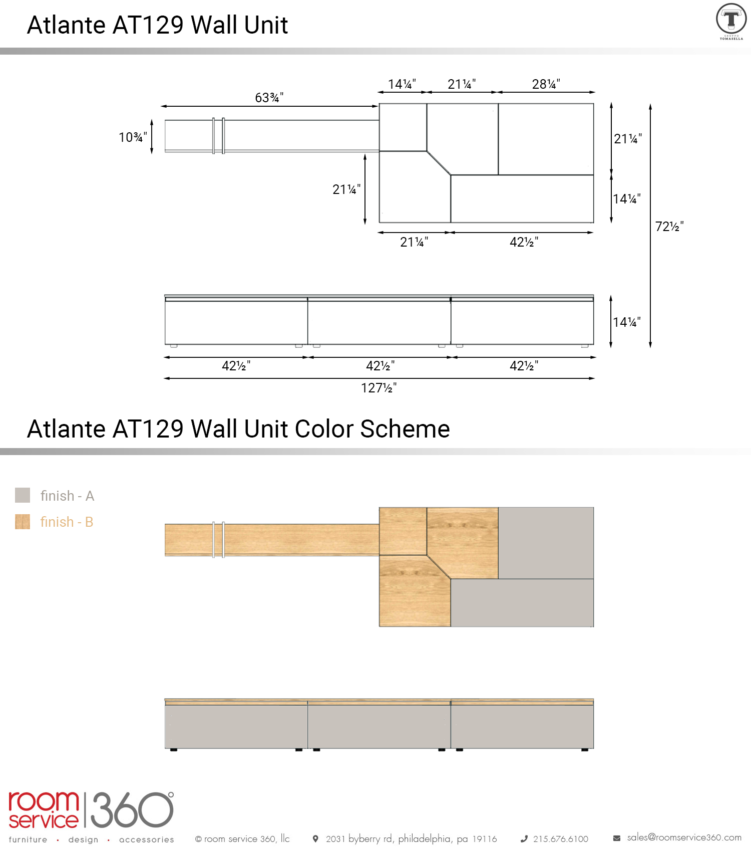 - Finish A comes in laminate, matte lacquer, colored wood, wood, decor graphic, and glossy lacquer