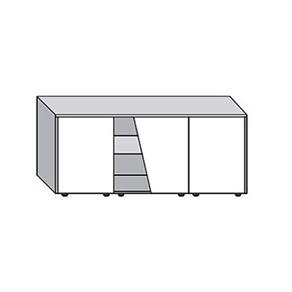 Manufactured in Italy with incredible attention to detail, the Diagonal sideboard is part of the bold Diagonal collection that all complement one another. Four versions are available, some with swing doors and some with drawers. The structure comes in laminate and lacquer finishes, while the open compartments come in different matte lacquers. For added customization, choose between plastic standard legs or a matte lacquered base.