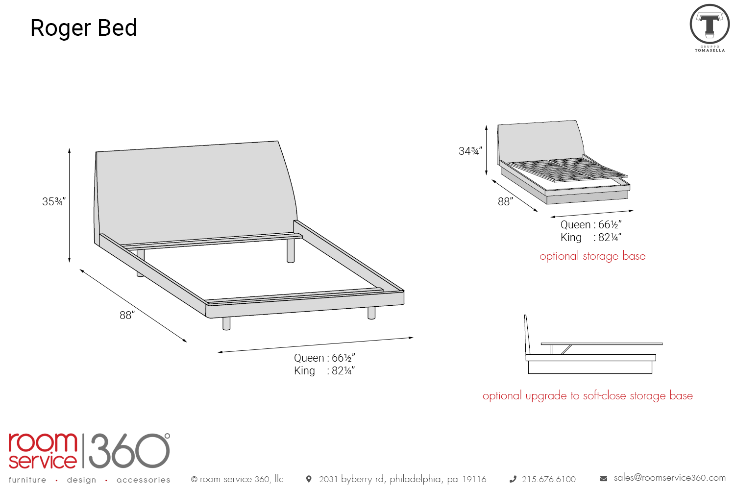 - Queen: 66¼"W × 88" D × 35¾"H