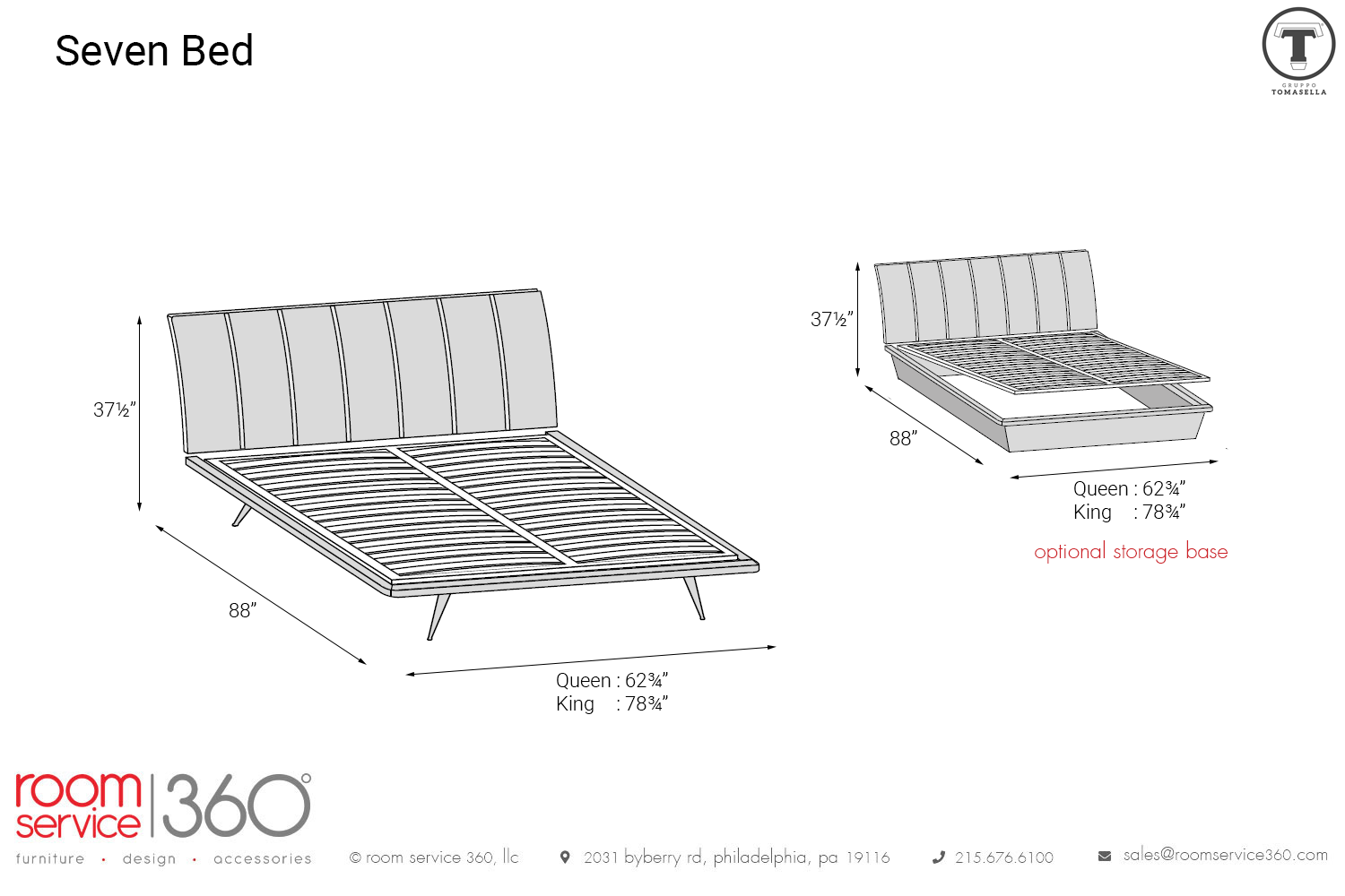 Manufactured in Italy to ensure quality, the Seven bed is available in king and queen sizes. Choose between Tondino, Victor, and Light leg versions. Upholstery options include an array of fabrics, leathers, and eco-leathers.