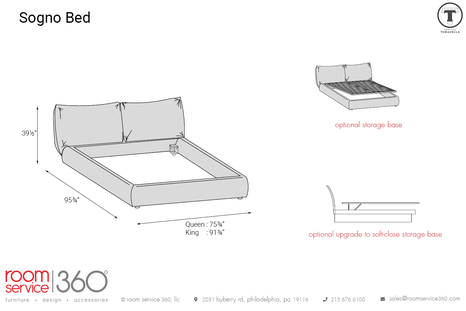 Manufactured in Italy with uncompromising quality, the Sogno bed is available in king and queen sizes. Choose between various fabrics, leathers, and eco-leathers to create a custom look. The optional storage comes in pull-up and soft-close versions for added appeal.