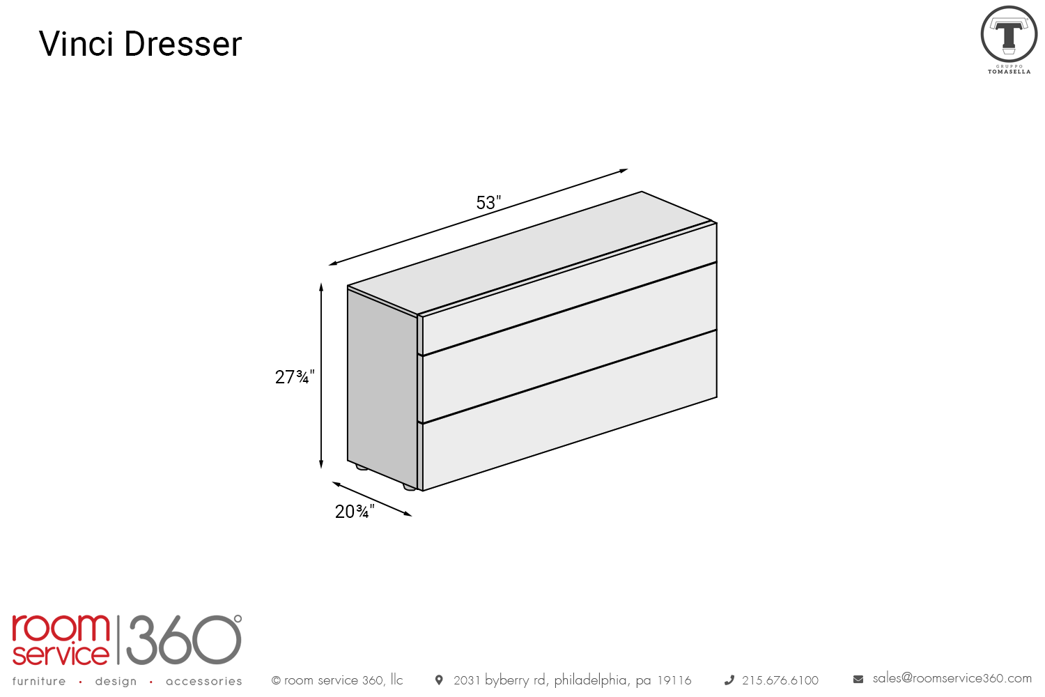 - 53"W × 20¾"D × 27¾"H