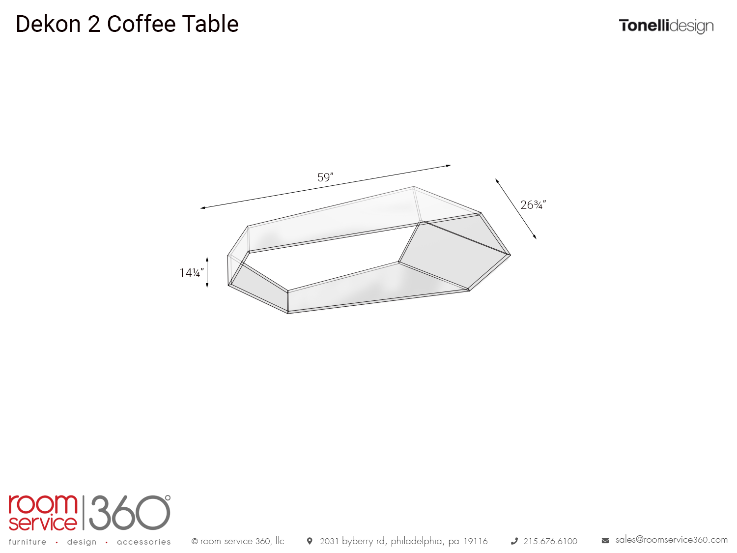 - 59"W × 26¾"D × 14¼"H