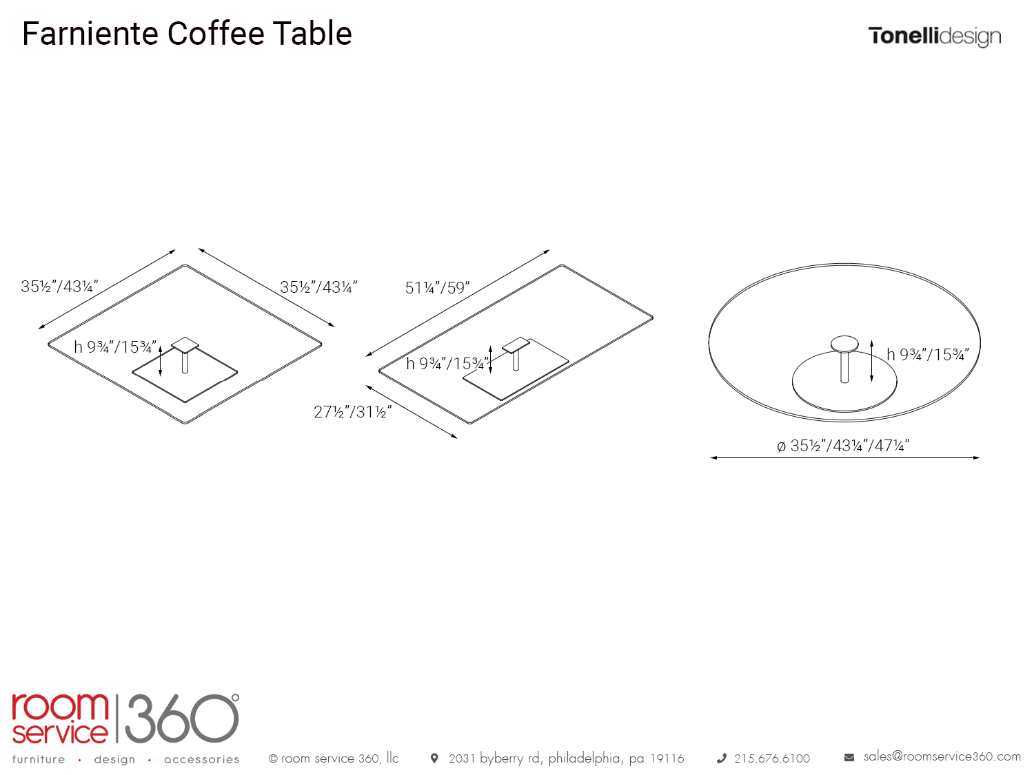 - 35 ½” W × 35 ½” D × 15 ¾” H
