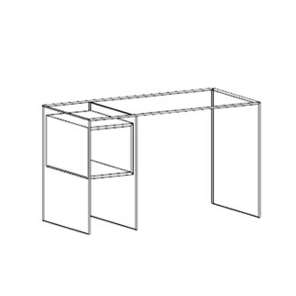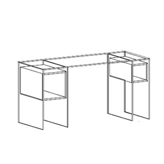 - Rectangular glass desk with wood shelves