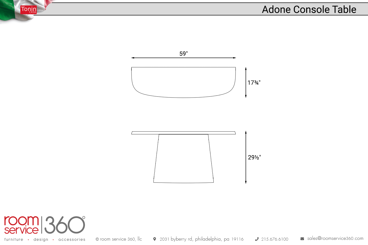 - 59"W × 17¾"D × 29½"H