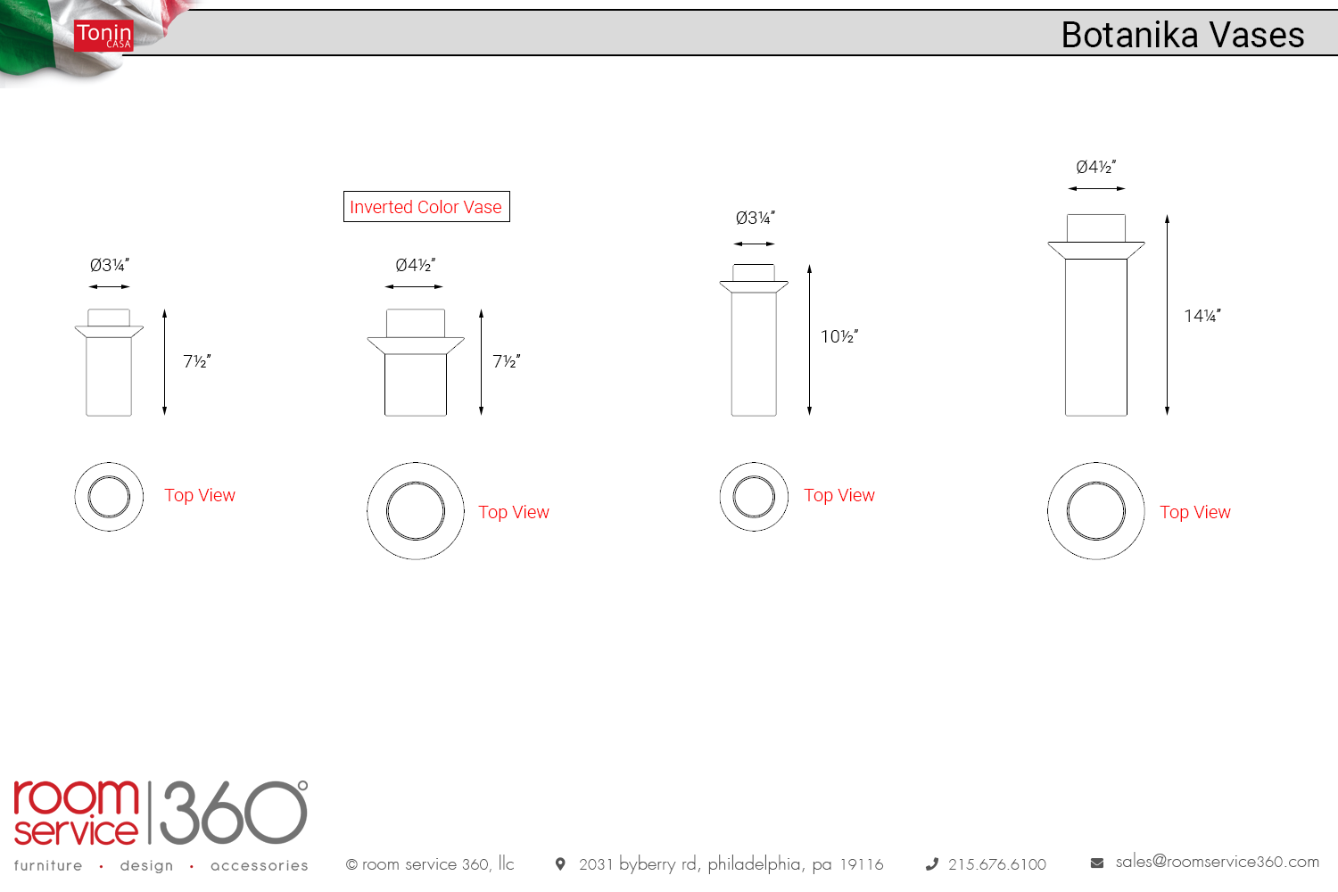 - Ø4½ × 7½"H (inverted color vase)