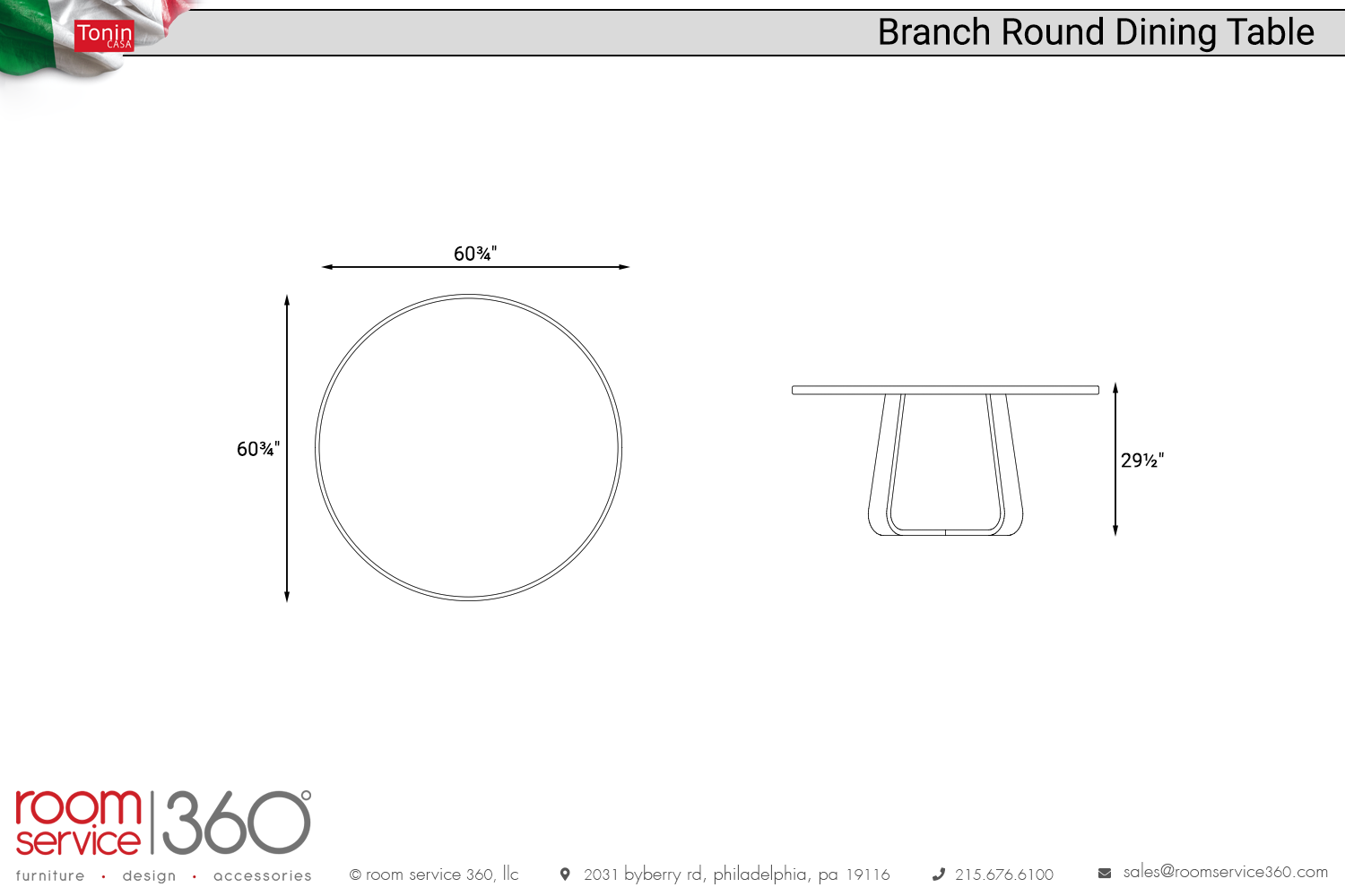 - Ø60¾" × 29½"H