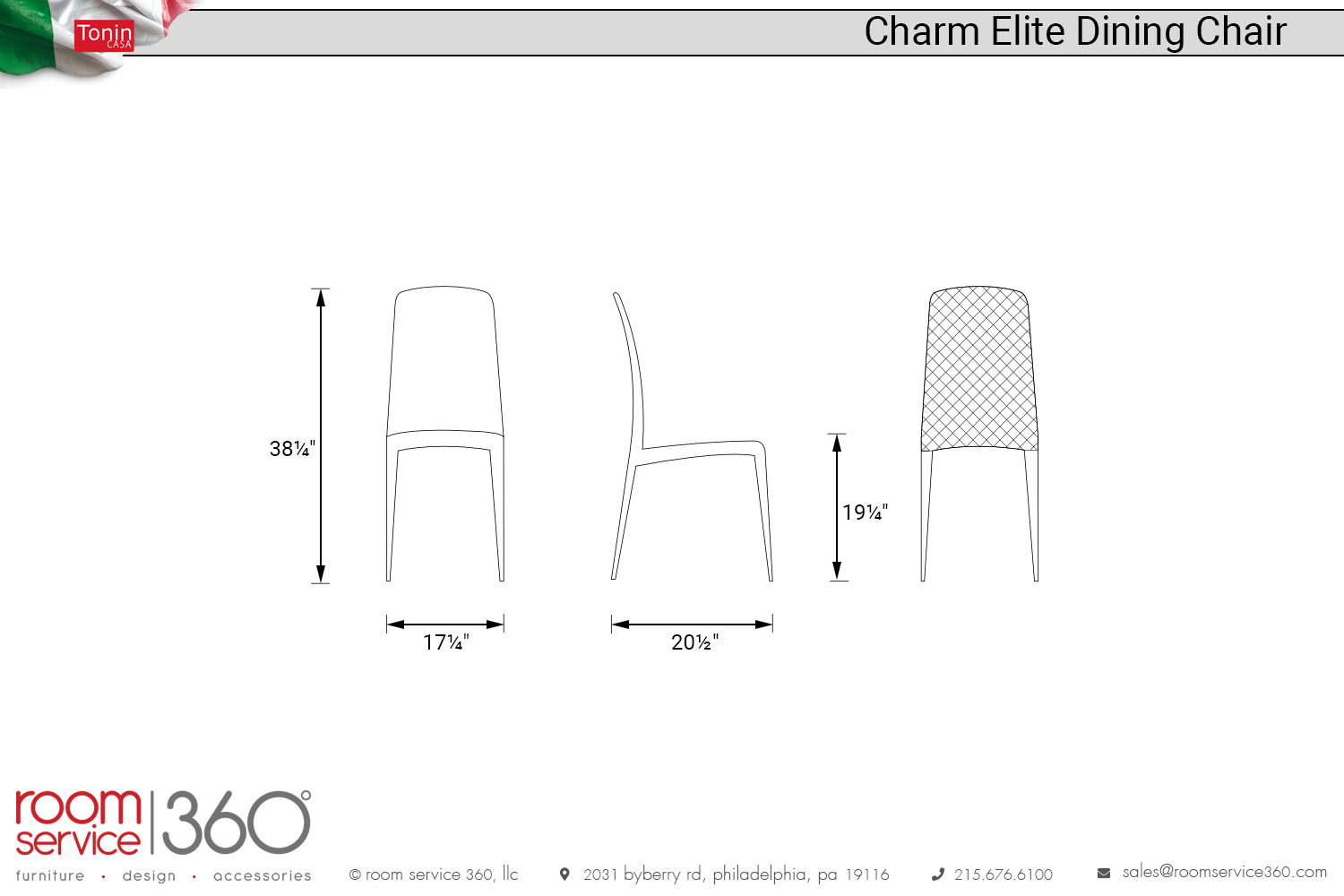 - 17¼"W × 20½"D × 38¼"H (SH: 19¼")