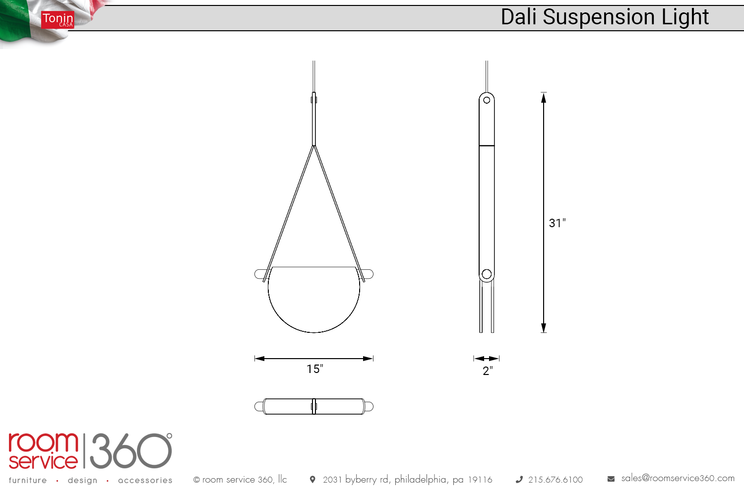 The Dali suspension light is not only an excellent way to illuminate a room but a gorgeous decor option as well. The juxtaposition between the semi-circle glass diffuser and the leather belt makes the light a lovely focal point. Perfect for an entryway or over a table, Dali offers ambient lighting that sets the mood accordingly. Place the suspension light alone or in stunning groupings for versatile visual effects.