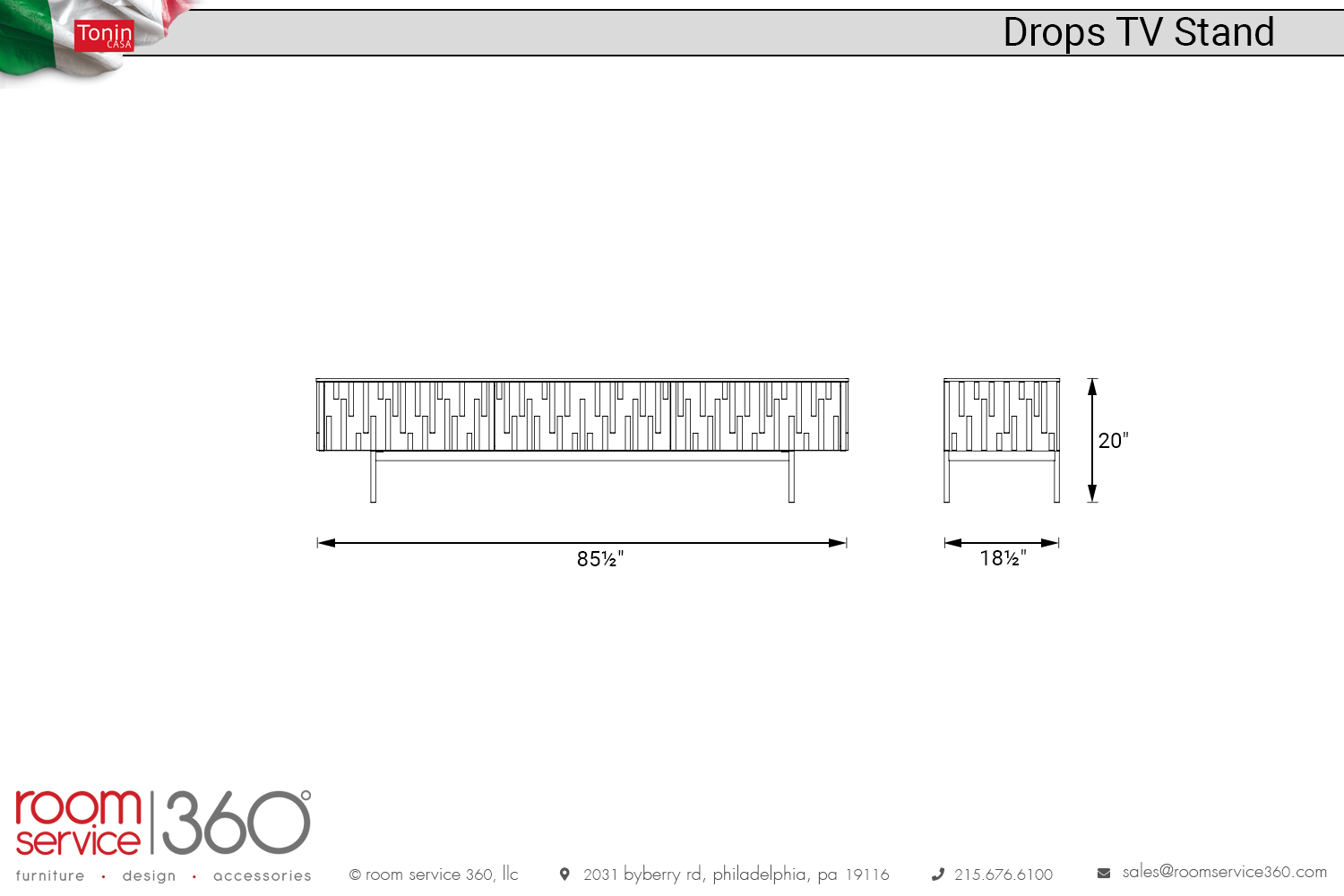 - 85½"W × 18½"D × 20"H