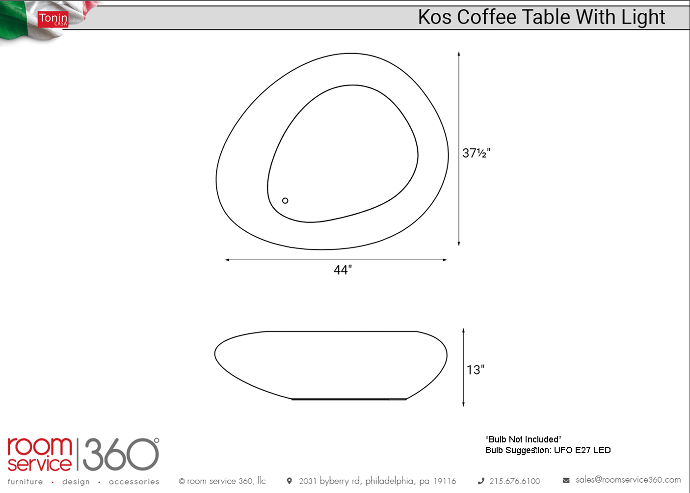 - 44"W × 37½"D × 13"H