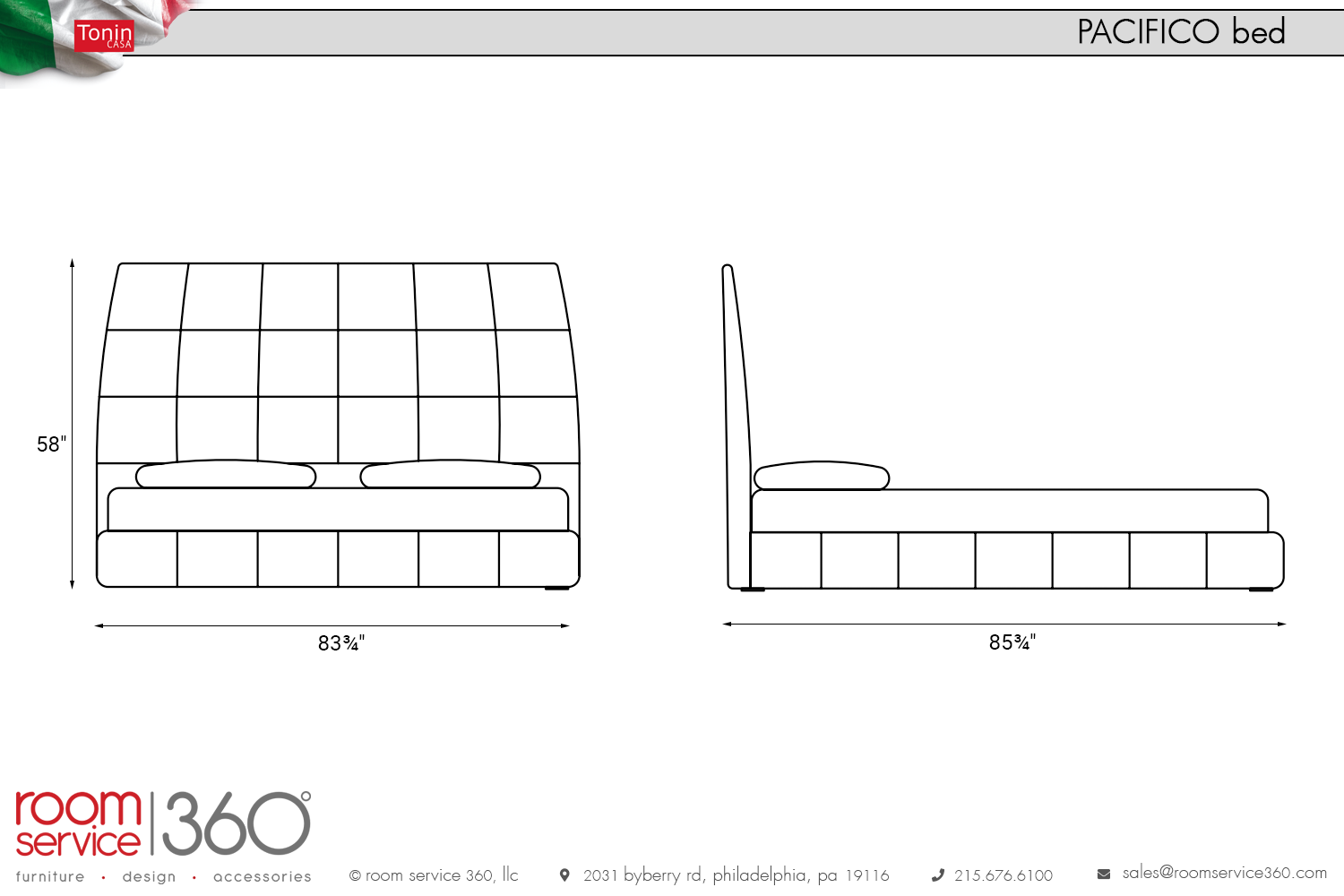 - 83¾"W × 85¾"D × 58"H