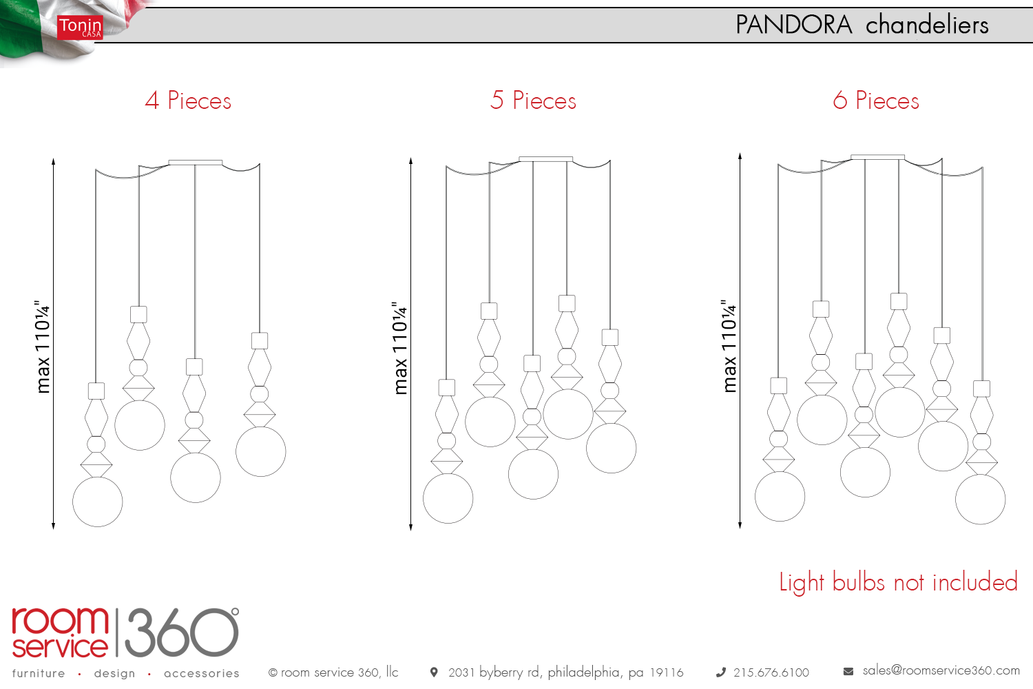 Part of the luxurious Pandora collection and designed by Nicola Tonin, the Pandora chandelier is manufactured in Italy. Versions are available with four, five, and six lights, and there are various finish options.